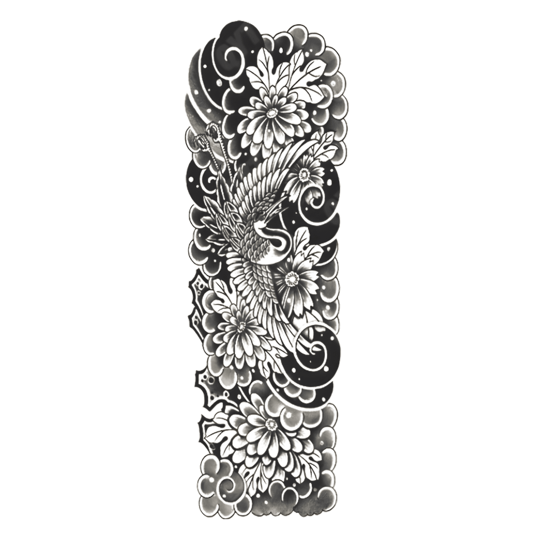 The Crane Sleeve tattoo represents grace, longevity, and quiet power, symbolising a life guided by patience, wisdom, and inner balance. Known for rising above chaos with calm strength, the crane reflects growth earned through experience, not haste. This Crane Sleeve semi-permanent tattoo inks that sense of elevated strength and timeless resilience onto your skin, reminding you that true power is controlled, composed, and enduring.